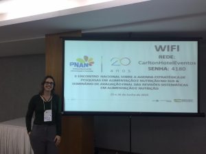 Nos dias 25 e 26 de junho, a coordenadora do RENOB-MG, profª Helen Hermana M. Hermsdorff, participou do II Encontro Nacional sobre a Agenda Estratégica de Pesquisa em Alimentação e Nutrição no SUS & Seminário de Avaliação Final das Revisões Sistemáticas em Alimentação e Nutrição, que aconteceu em Brasília e fomentou discussões sobre as demandas dos seguintes assuntos: Prevenção de Controle da Deficiência de Micronutrientes, Gestão e Controle Social, Promoção da Alimentação Adequada e Saudável (PAAS), Controle e Regulação dos Alimentos, Atenção Nutricional, Necessidades Alimentares, Avaliação das Práticas Alimentares e, por fim, Qualificação da Força de Trabalho. Nesse sentido, o principal objetivo do encontro foi discutir os temas que devem compor uma agenda estratégica de pesquisa em alimentação e nutrição no Sistema Único de Saúde (SUS), buscando a qualificação da gestão e acompanhamento dos programas, estratégias e ações relacionados à PNAN.